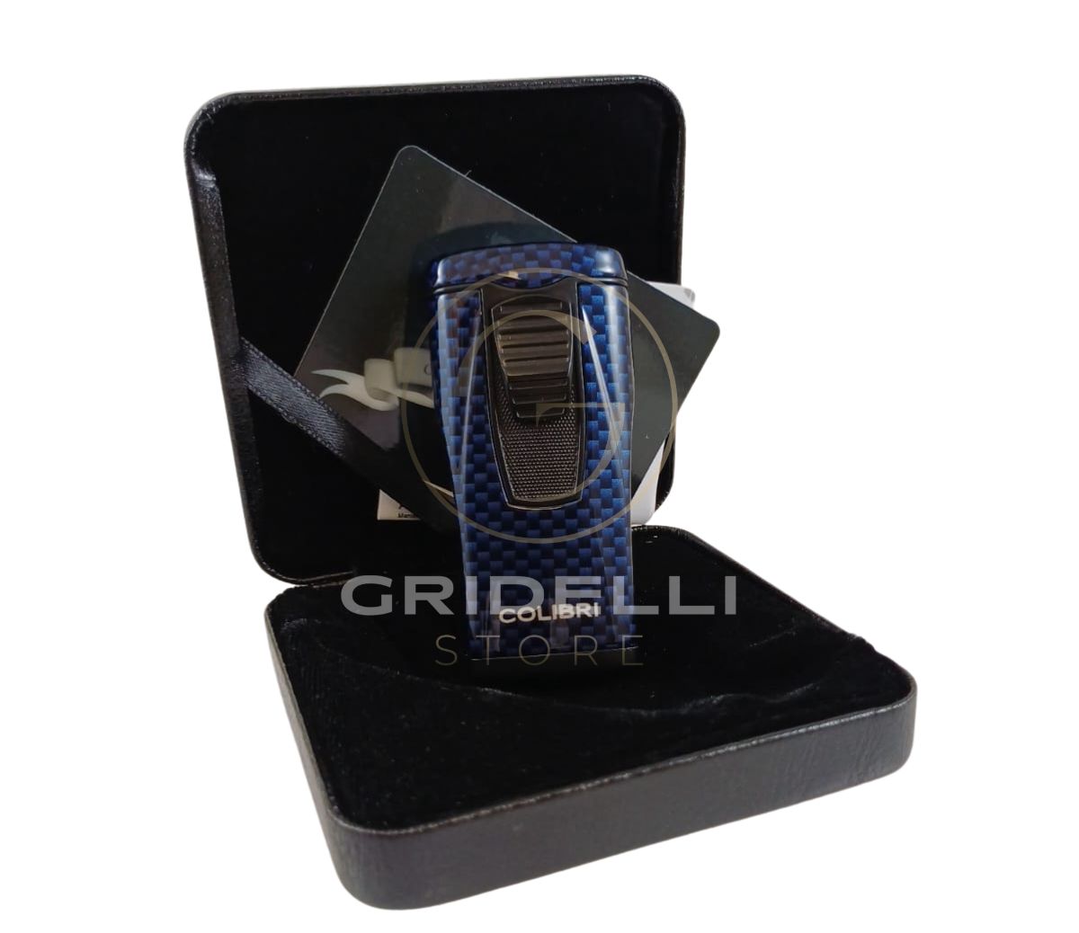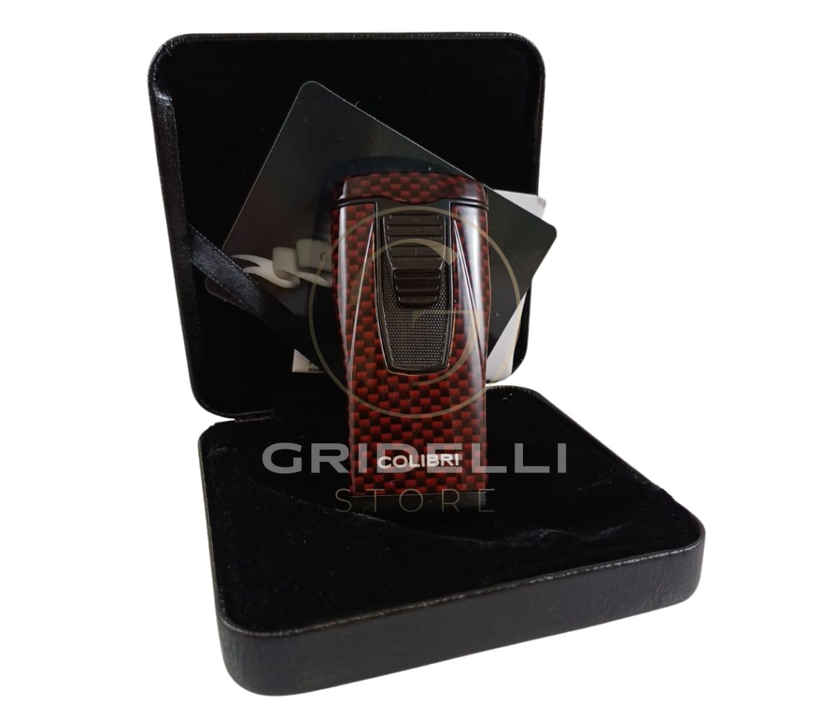 Accendino Lubinski Colibri, jet flame in fibra di carbonio, in due colori (rosso/blu)
